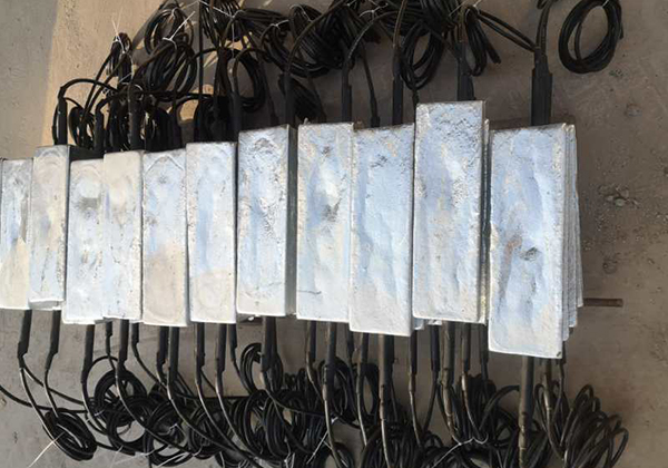 根據(jù)電化學(xué)原理,從鎂合金陽(yáng)極材料體上通過(guò)土壤、水等電解質(zhì)向被保護(hù)體如鋼質(zhì)結(jié)構(gòu)提供陰極電流,使被保護(hù)的鋼質(zhì)結(jié)構(gòu)進(jìn)行陰極化,實(shí)現(xiàn)陰極保護(hù)。隨著電流的不斷流動(dòng),陽(yáng)極材料不斷消耗掉。這就是犧牲陽(yáng)極名稱(chēng)的由來(lái)?!〕商祖V犧牲陽(yáng)極,由鎂犧牲陽(yáng)極錠1支,一根VV-10㎜2電纜3米,填包料50kg,棉布口袋1條,塑料編織袋1條組成。即棉布口袋內(nèi)有鎂犧牲陽(yáng)極錠1支其鐵芯上焊VV-10㎜2電纜3米1根,焊接處做絕緣處理,并套有熱縮管。鎂犧牲陽(yáng)極錠周?chē)鶆蚍植?0kg填包料。棉布口袋外套塑料編織袋1條。